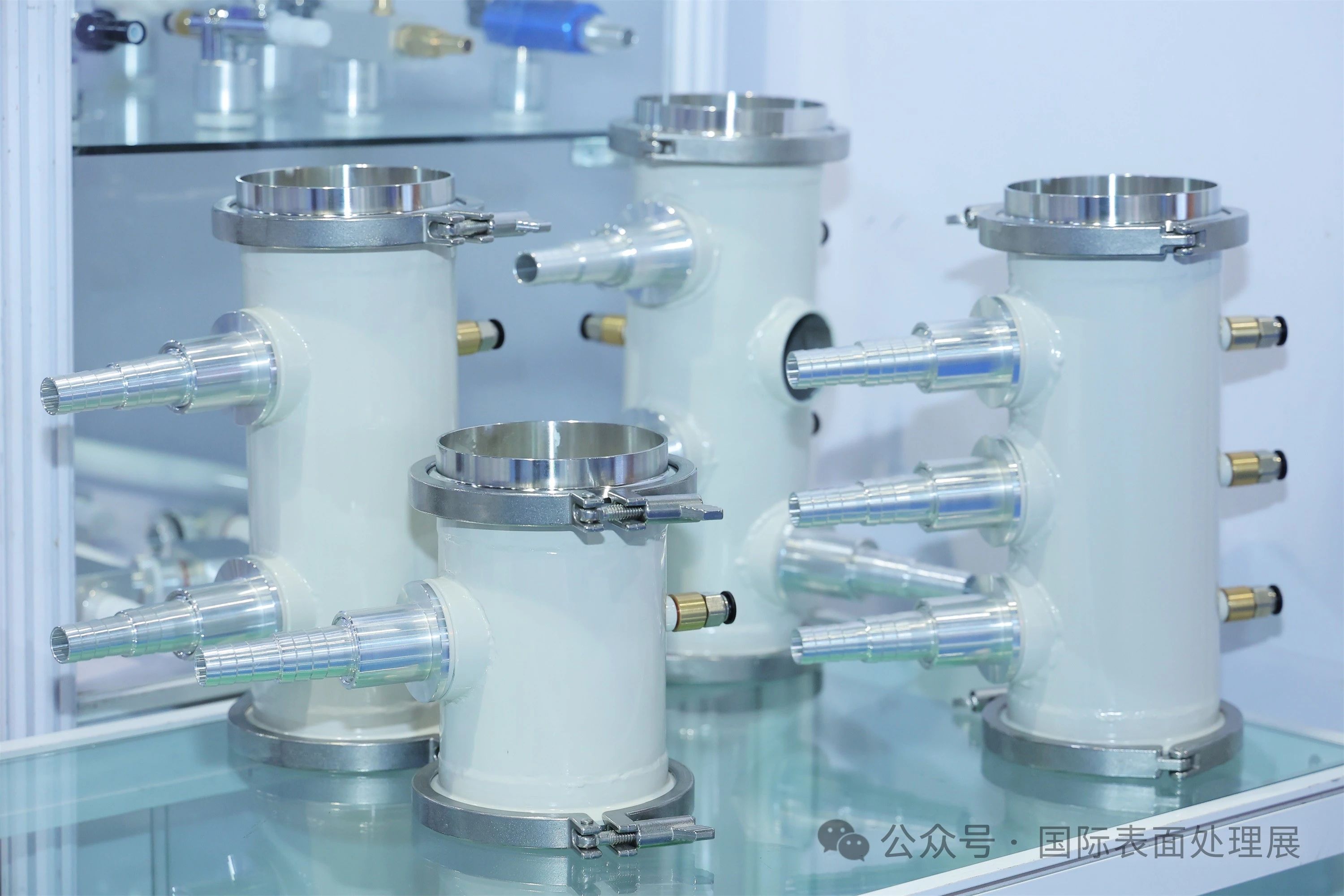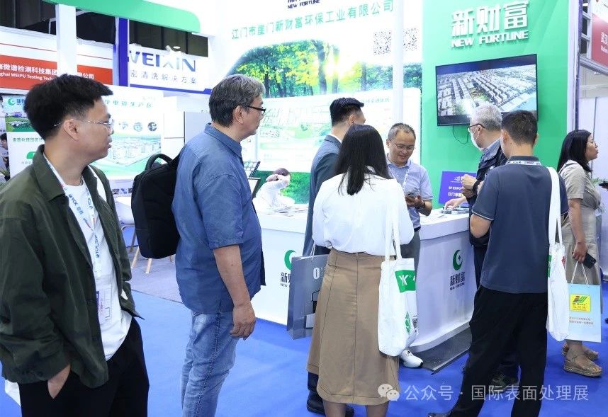 奥邦化工展示电镀光亮剂、电镀中间体、特殊化学品。三川宏带来智能过滤机、电镀过滤机、化工泵等产品。蓝色起源展示BOME系列自然循环MVR蒸发器、BOSE系列刮板结晶干燥器。江苏科滤展示KLNC自然循环、KLFP强制循环系列产品,广东尚辰的“电镀废水零排放”和“钛白粉废水零排放”技术可圈可点,技术成功应用在多个大型园区和世界500强企业的环境生态治理。江门博涂的静电喷粉枪、喷粉房、往复机、供粉中心吸引观众驻足观看。珠海玛斯特的自动转挂系统由六轴机器人替代人工进行挂具/载具转运、浸涂作业。鸿亿展示龙门式滚镀设备、龙门式吊镀设备、油压回转式电镀设备等。