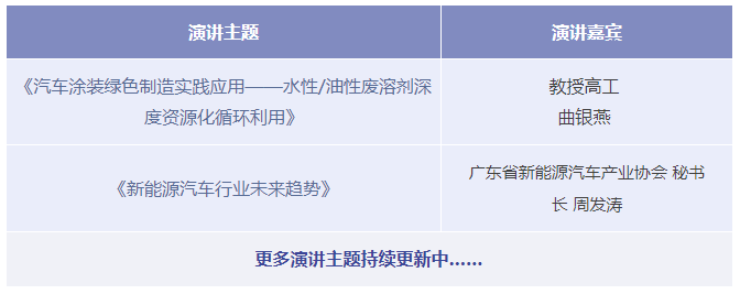 本次研讨会主要围绕新能源汽车产业发展趋势领域展开除体系化梳理,展示汽车色彩管理技术与检测、自动打磨与检测、汽车涂料与前处理材料、表面处理技术与装备、涂装生产线质量控制与检测、涂装环保等汽车涂装新技术、行业解决方案以及行业发展趋势,针对表面处理高性能、高质量要求等相关系列问题展开专题研讨。